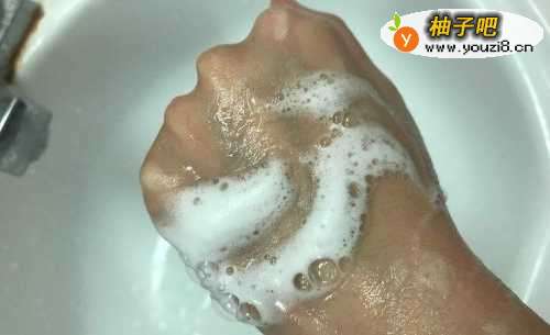 需要清洁的皮肤上挤上适量洗面奶。