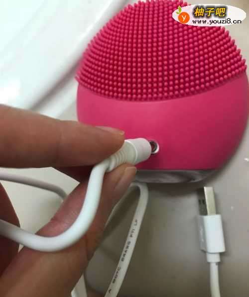 使用自带的USB充电线,洁面仪背面的充电口是防水的,可以在浴室使用。