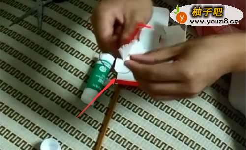 制作小灯笼是要准备的有剪刀,固体胶,丝线,纸盒,以及筷子。
