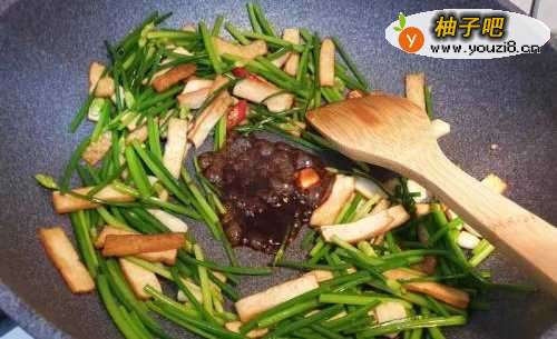 4韭菜花微软时加鸡精和蚝油拌炒入味
