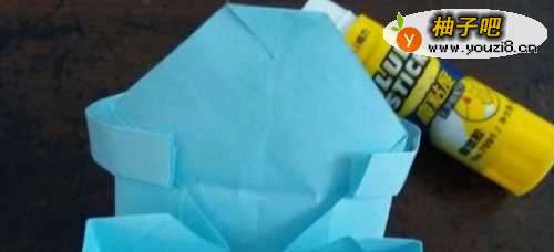 6最后把长条纸粘在图一的位置,迷你手提包就折好了。