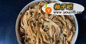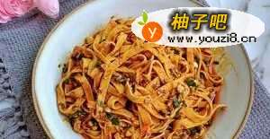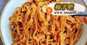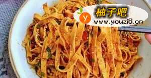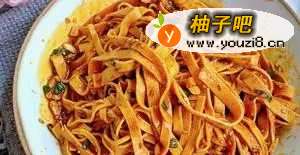 6豆皮切丝,开水里烫过,放入酱汁中拌匀