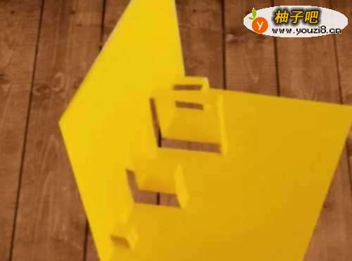 首先准备好两张黄色的彩纸卡片,对折一下。