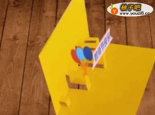 3再用其他的彩纸剪出彩袋装的小纸片写上教师节快乐等字样,再拼出彩色的气球。