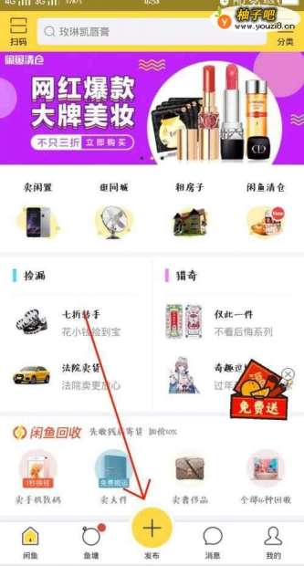 首先打开闲鱼,主页面如图所示,点击最下方中间的加号。