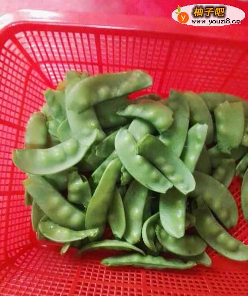 1,把荷兰豆两边的老筋去掉备用。也可以用开水焯一下。