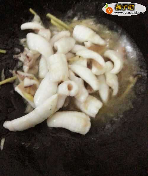 55,把鱿鱼倒进去,大火爆炒。