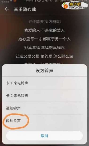 6然后会跳出以下对话框,我们选择设置为闹铃铃声,这就就是设置成功了,如图所示