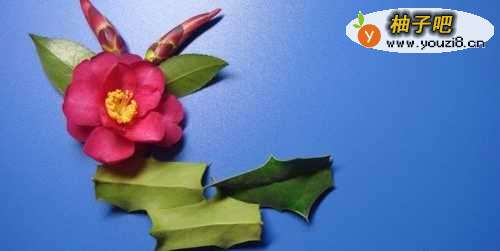 6最后拼装快乐的小山羊的背景部分,由一个细长的树枝和一朵小花所组成,摆放的位置,如下图所示。这样快乐的小山羊的场景画就做好了。
