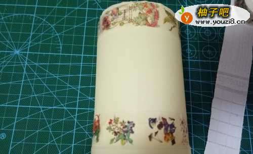 3纸围好瓶口一整圈后,将剩余部分剪下,如果下面部分不平整,可以分开段贴,接口再用胶带粘。