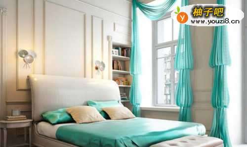 3、地面还是选择地板铺设,墙面乳胶漆,可以采用冷色调乳胶漆,然后次卧的家具最好较少比较好。