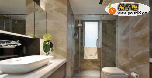 6、最好采用隔断式的装修,地面和墙面还是瓷砖,洗澡的用玻璃进行隔断较好,这样空间会稍微大一些。