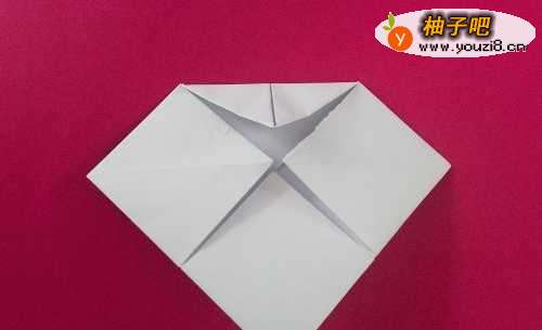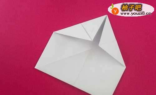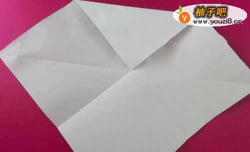 9V形那个地方,将上层向上折一下,放平 。