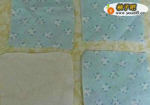 首先裁剪4块四边形的布料,其中3块用来做叶子,1块用来制作果实。