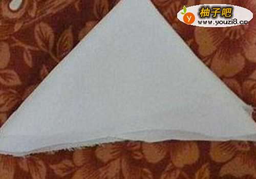 2接着将做果实的布料折成三角形。