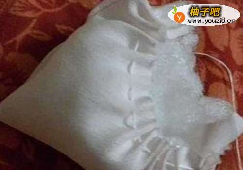 4紧接着把中间打开塞上棉花,周围缝上线。