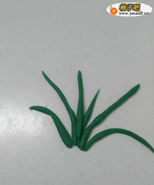 先用深绿色彩泥搓一个非常长的圆条,用来做叶子。