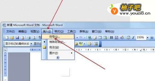 2点击“插入”菜单,选择“符号”。