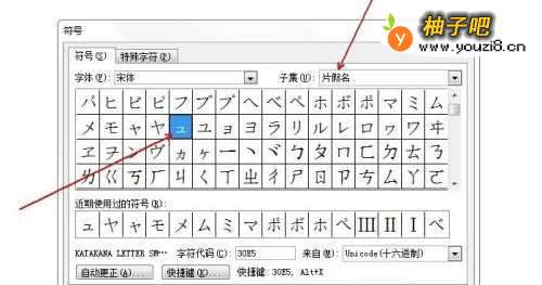 word中如何输入片假名ュ