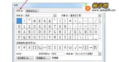 3出现“符号”对话框。点击“符号”选项卡。