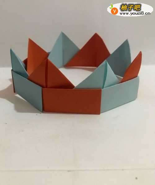 儿童手工启蒙折纸 一顶即漂亮又漂亮的生日小皇冠 怎样用彩纸折叠 需要预备的材料 两种颜色的彩纸8张 先取一张折叠一个小模型 然后再重复折叠另外7个 按方法步骤 拼装 在一起即可