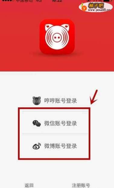 2步骤二、下载完成后打开哼哼音乐,注册登陆,注册方法有3种,V博账号和V信账号直接授权登陆;