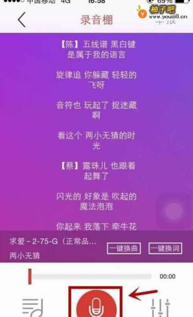 7步骤七、伴奏加载完毕后点击【红色麦克风】按钮;