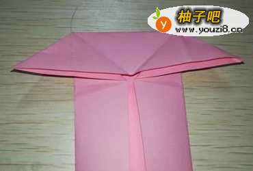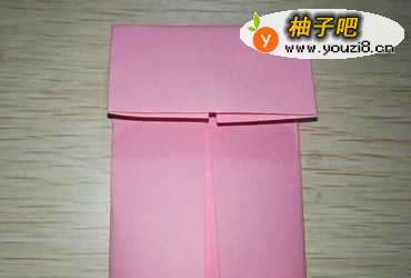 3然后将上面小矩形向上方翻折成小三角形,再向下翻折成屋脊状。