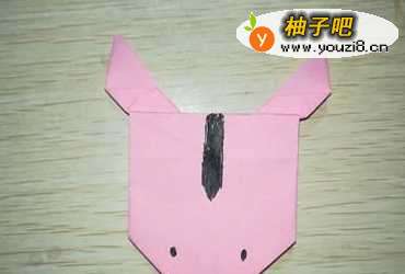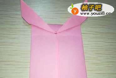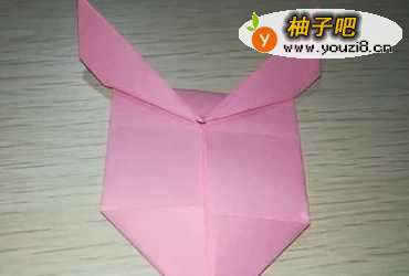 5然后将上一步折好的形状翻到背面,沿上面那部分的中间,向上翻折出鹿角。