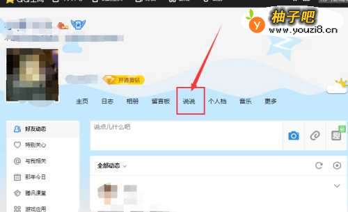 3打开QQ空间好友动态页面后,点击上方的“说说”选项。