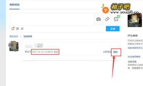 5接下来的页面中就可以看到自己还未发布的定时说说了,点击相应说说右下角的“删除”选项。
