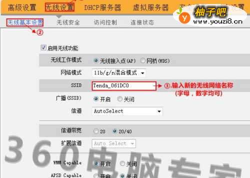无线连接的设置方法 开启无线连接功能,设置无线的连接名称,其他选项通常默认即可。