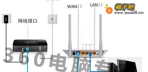 路由器硬件的连接 首先将modem(调制解调器)端的网线与路由器上wan接口(此接口通常颜色或位置区别其他几个相同外观的接口) 如一些小区宽带等直接入户一根网线无需modem连接的网络连接方式,直接将此网线连接wan接口。
