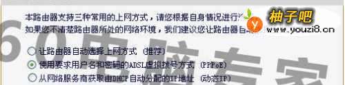 3正确输入密码后会进入路由器的设置界面,一般未进行设置过的路由器会自动弹出设置引导界面通常家庭使用大多数选择pppoe方式,如果不确定可以选择第一项,这里我们按pppoe方式讲解。