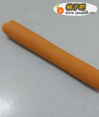 2先用桔黄色搓一个粗粗的长条。