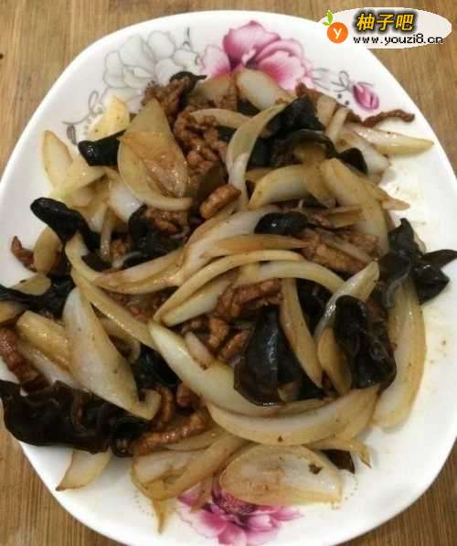 10一盘好吃的洋葱木耳炒肉丝就完成了。
