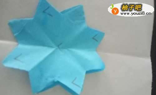 6打开,一朵单层的八瓣花就做好了