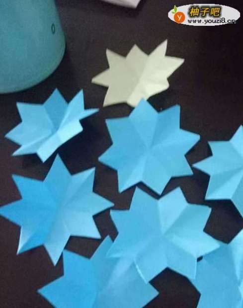8打开刚开始的那张纸,将第一朵八瓣花粘到上面