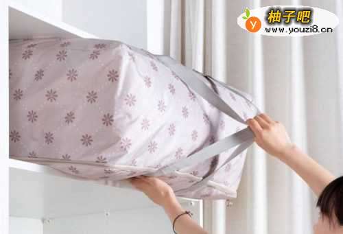 4多余的被子,换季的衣物,放入收纳袋中,放在高处,或者是床底下。这样子,节省一些实际的空间。