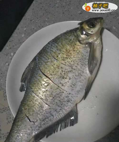 鱼身洗净切口,腌制一点盐,放到盘子里面,撒上剁碎的材料,放入蒸锅里面,大火30分钟左右