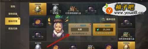 2进入到宠物功能界面,点击左侧的【 趣味夺宠】选项。