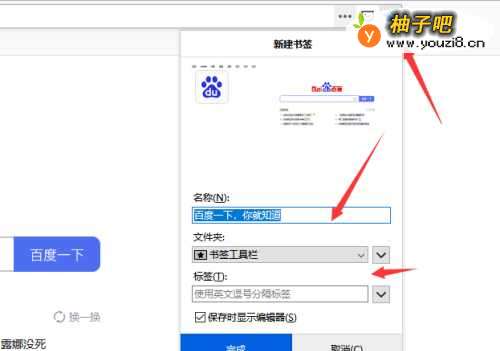 2点击收藏后就会将网页默认收藏,在下方编辑栏中可更改保存名称