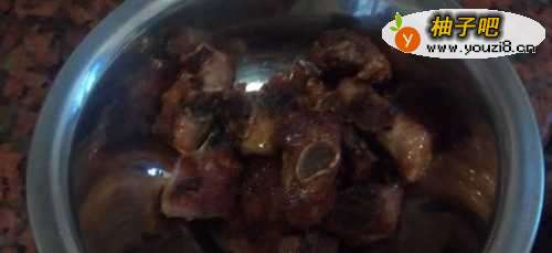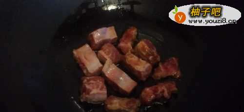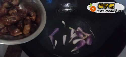 11跟着把小葱白放入煸出香味,然后放入排骨。