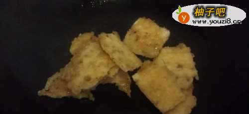 10同时在锅内用锅铲把它切成小块,盛出备用。