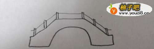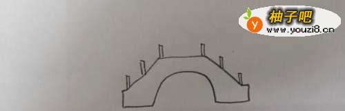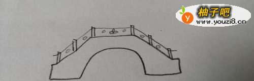 2在桥框架上画出左右对称的桥栏,距离要大致相等。