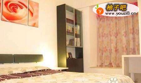 2主人房,1.5m床、床头柜、1.5m长书桌,粉色的卧室空间给人一种浪漫的感觉。