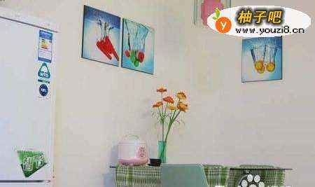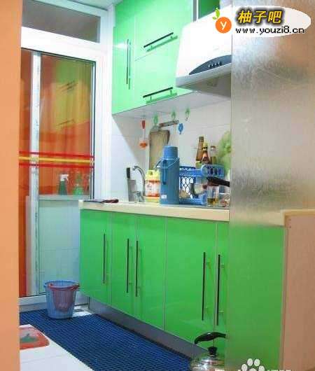 4再来一张厨房的,厨房采用绿色,视觉效果比较强,唯一遗憾就是厨房小了点,目前来说还是够用。