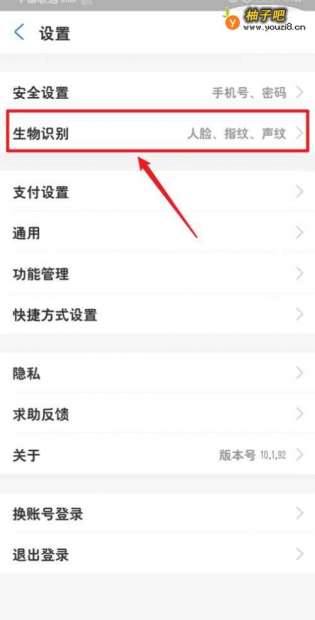 4点击设置菜单中的【生物识别】选项。