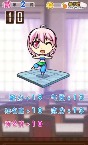 3等到体力刷到300之后,就开始上舞蹈课来刷魅力、气质、知名度。期间参加丰收庆典舞蹈比赛可以获得奖金。其他的庆典可不参加,可以减少20的疲劳值。