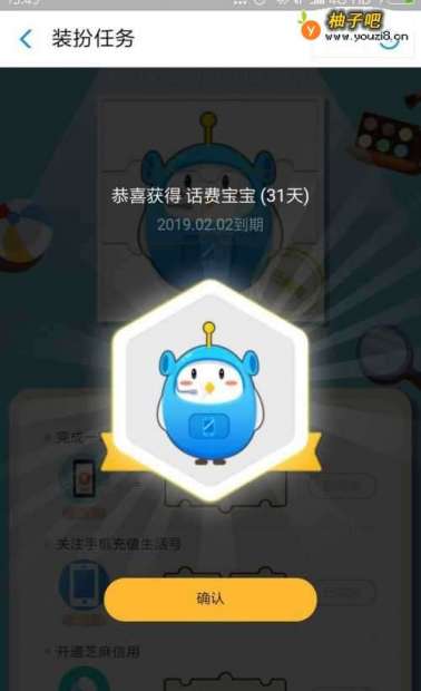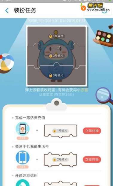 6完成3个任务并都兑换成碎片后我们就获得了话费宝宝装扮。